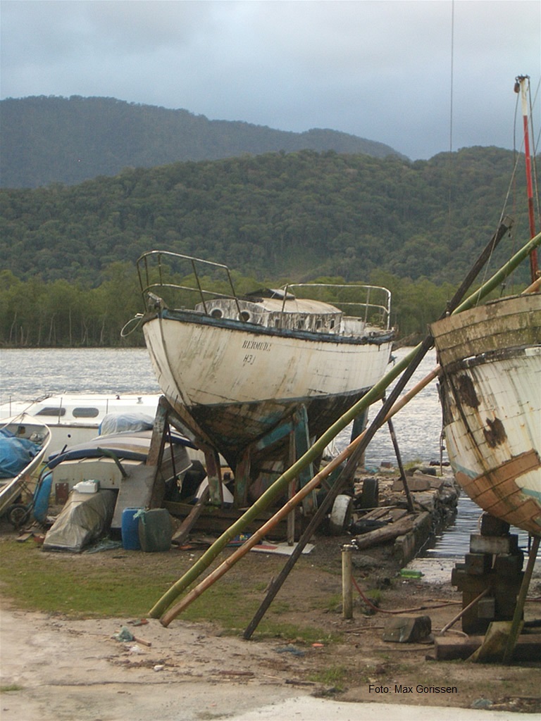 É um veleiro Classe Brasil abandonado em um estaleiro na estrada Guarujá-Bertioga. Alguém se habilita a reformá-lo?