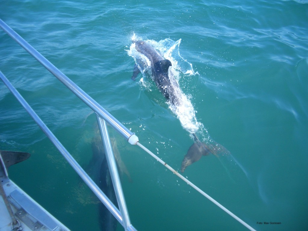 É sempre emocionante quando os golfinhos aparecem. Foto tirada próximo à Ponta da Sela no Canal de São Sebastião.