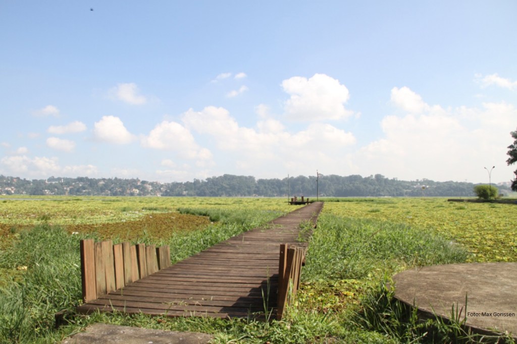Estado lastimável que se encontra a represa da Guarapiranga. Coberta de aguapés.