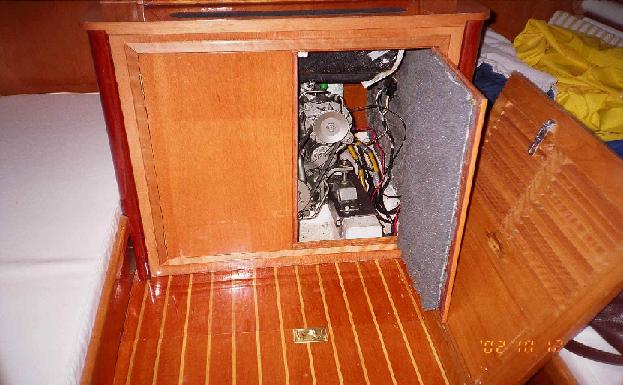 Quando comprei o veleiro, haviam acabado de trocar (1999) o motor por um novo Yanmar 1GM, 1 cilindro, 9hp – Pé-de-Galinha com hélice de 2 pás fixas. Como não haviam reformado o porão, retirei o motor e fiz uma reforma completa do porão, inclusive, instalando isolamento acústico de chumbo coberto de espuma.