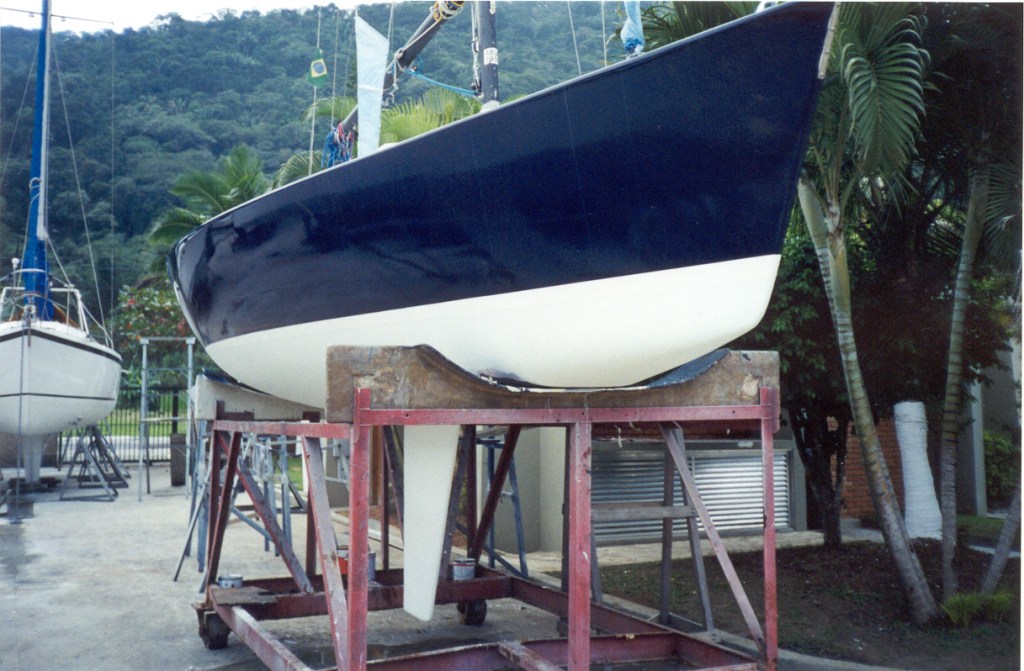 Em 2009, outra reforma, muito mais profunda, removendo todo o interior para instalar um novo mais leve. Também retirei tudo do deck que foi reparado e lixado até a fibra para aplicação de primer antes da pintura e o antiderrapante. O casco também foi lixado até a fibra e todo revestido com primer antes de aplicar novamente a pintura azul com faixa verde. Retirei o leme e o reformei e a quilha foi lixada até o ferro para ser tratado e pintado. O motor Yanmar 1GM também foi totalmente desmontado, o cabeçote foi trocado e todo pintado.