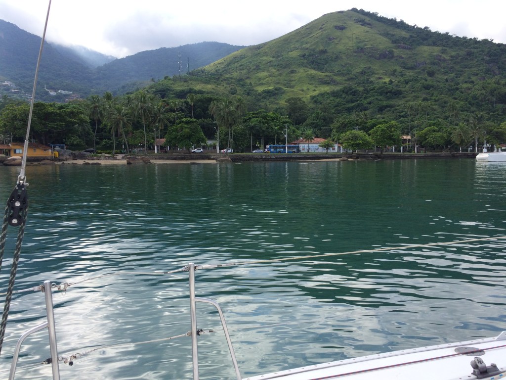 Chegando ao Saco da Capela, perto da Vila, achei um local em frente à Casa da Princesa, com calado suficiente na maré baixa (calo 2,2 metros), e joguei o ferro.