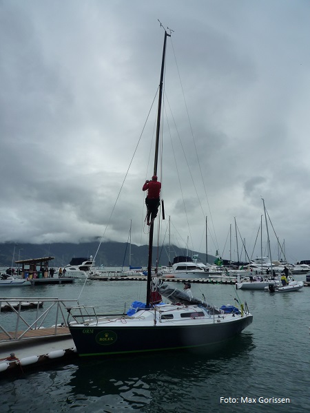 Tudo OK, levamos o veleiro e amarramos na poita. Limpamos e organizamos tudo pois, amanhã, diferente dos outros veleiros que também quebraram o mastro ou tiveram avarias graves, o ORM, continua na regata. Marquei com a tripulação às 9:00 hs do dia seguinte para checar tudo antes da próxima regata.
