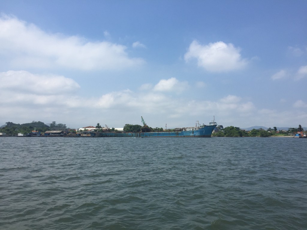 Prédios feios e de arquitetura antiquada complementam a sensação de decadência da orla da cidade histórica. E os navios atracados, destruídos, não ajudam em nada.