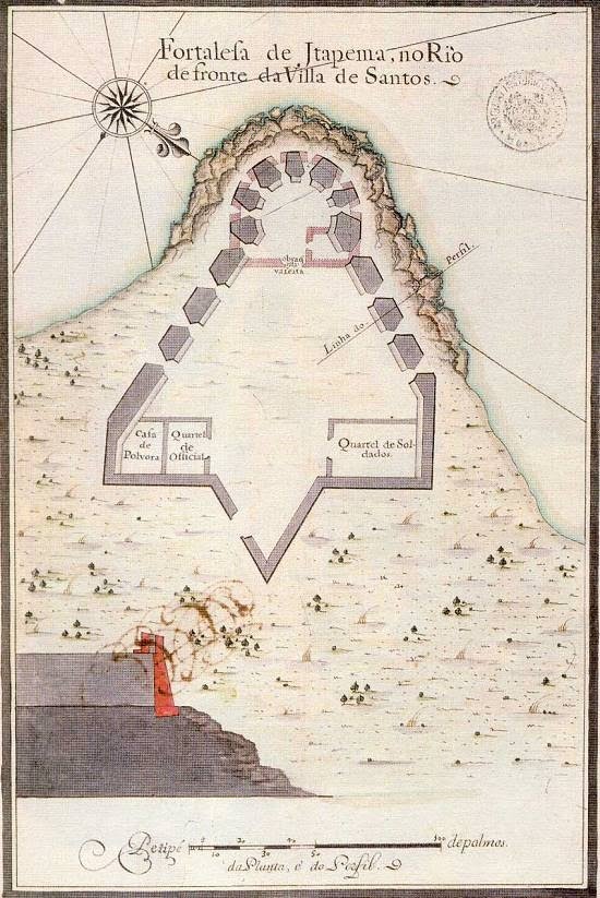 Mapa do século XVII indica posição do Forte de Itapema na Ilha de Santo Amaro com