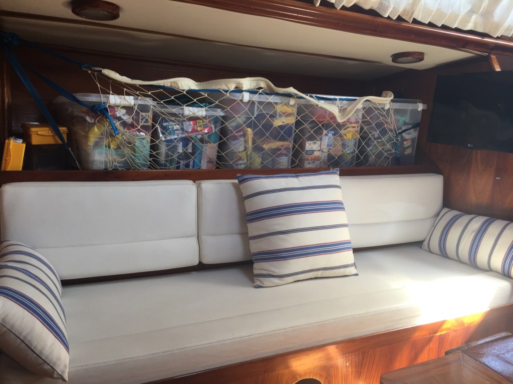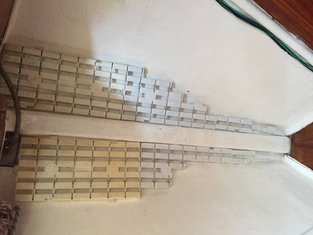 Em todos os paióis ou embaixo de camas, onde tenho espaço para guardar “coisas”, instalei uma grade (tipo de banho) para não permitir que nada encoste no casco. Desta maneira, caso entre água, esta passa por baixo e vai direto ao porão não molhando o que está encima… e pode ter certeza: em determinado momento, vai entrar água!