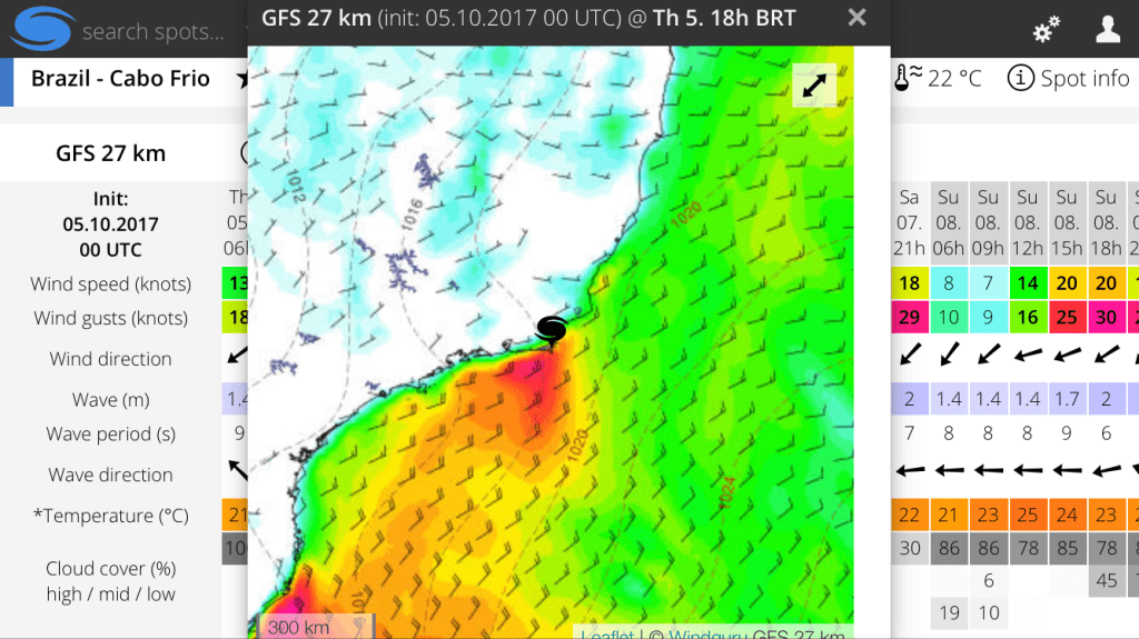 Recebi a Carta Sinótica e o Aviso de Mau tempo atualizados do Maxy, que incumbi de me enviá-los todos os dias antes de ir para a escola – muitas vezes, por causa do baixo sinal de celular, por incrível que pareça, não consigo abrir o aplicativo, mas consigo abrir o WhatsApp… Vai entender… De qualquer maneira, pela Carta Sinótica, dava para ver uma frente fria vindo do Sul; no entanto não parecia que ela iria chegar nos próximos dias, e não havia nenhum alerta no Aviso de Mau Tempo. Então, recolhi o ferro e parti.