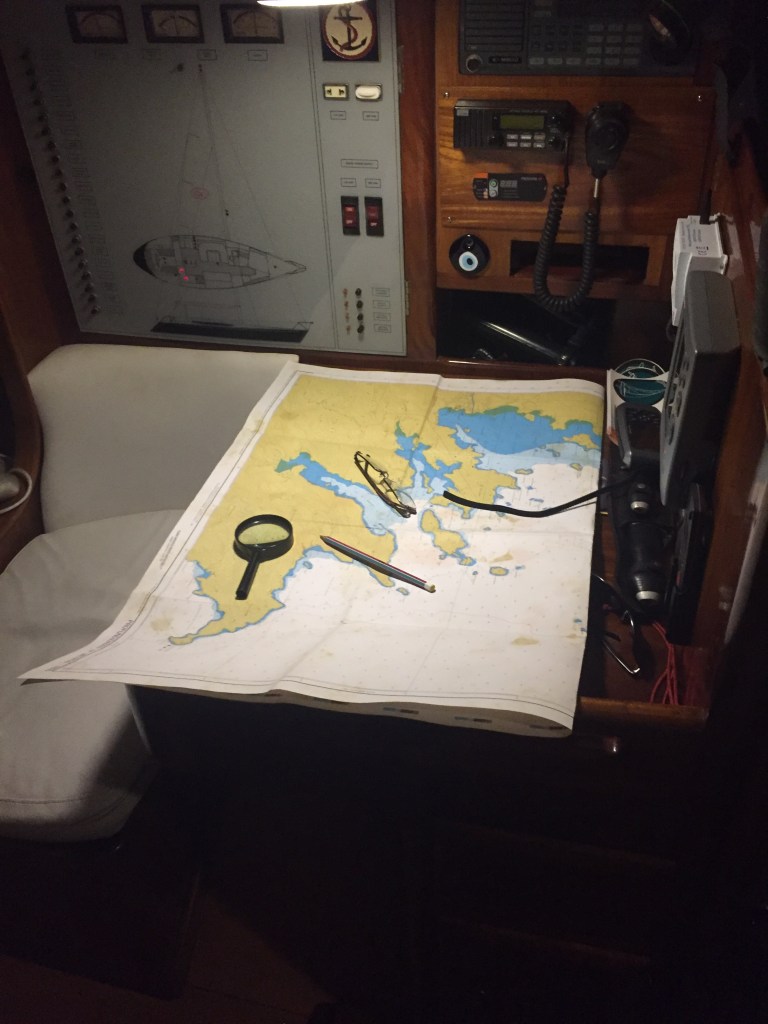 Sempre preparo a navegação nas cartas de papel e sempre as tenho a mão no convés. Nunca confio somente nos eletrônicos!