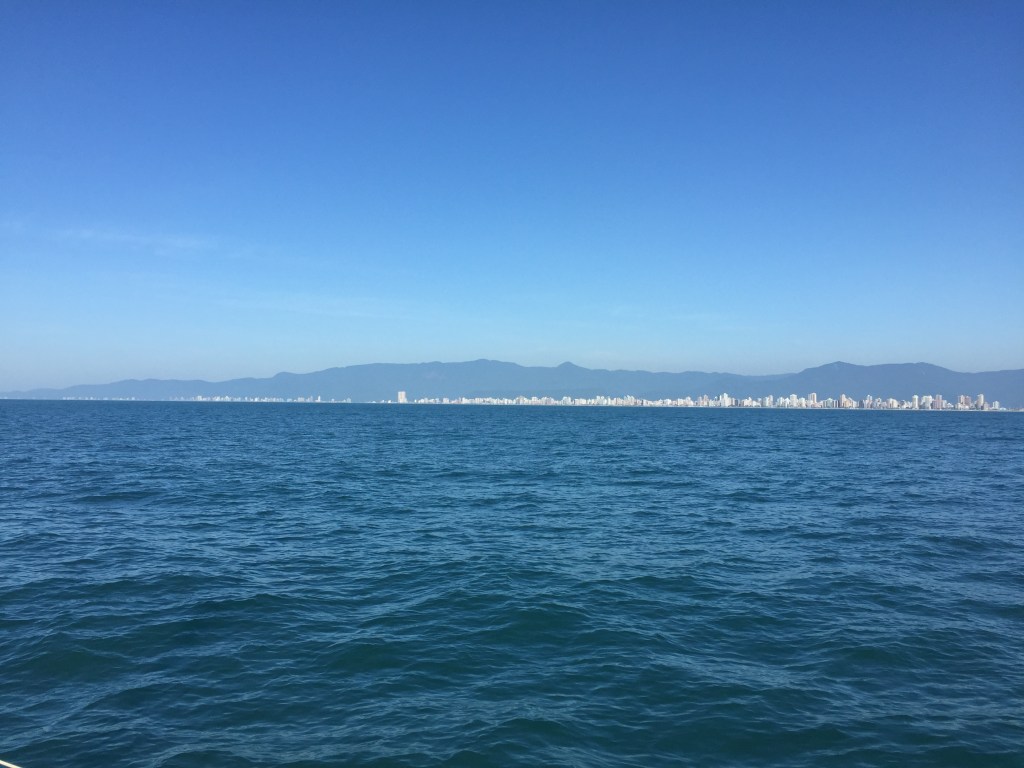 Saindo da Baía de Santos e passando a Ponta de Itaipu