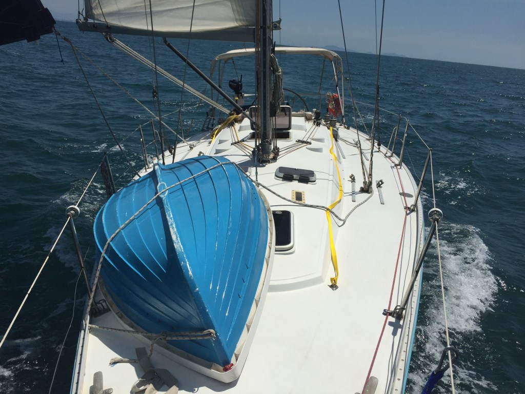 Perrengue porque, tendo meu veleiro um design de 1987 baseado nas regras da Classe IOR (International Offshore Rule – regras aplicadas aos veleiros de regata entre os anos 1970 e meados da década de 1990, que estabeleceram os parâmetros para o rating das “Ton” Classes, ou classes de tonelagem), ele tem uma popa mais estreita, dificultando a estabilidade com ventos de popa. É um veleiro insuperável na orça e muito bom nos ventos de través, contudo, nos ventos de popa, parece um João Bobo, pendendo de um lado para o outro só por causa do vento, o que piora ainda mais se as marolas também estiverem vindo da popa… Resumindo: as perspectivas para as próximas horas eram de muito desconforto!