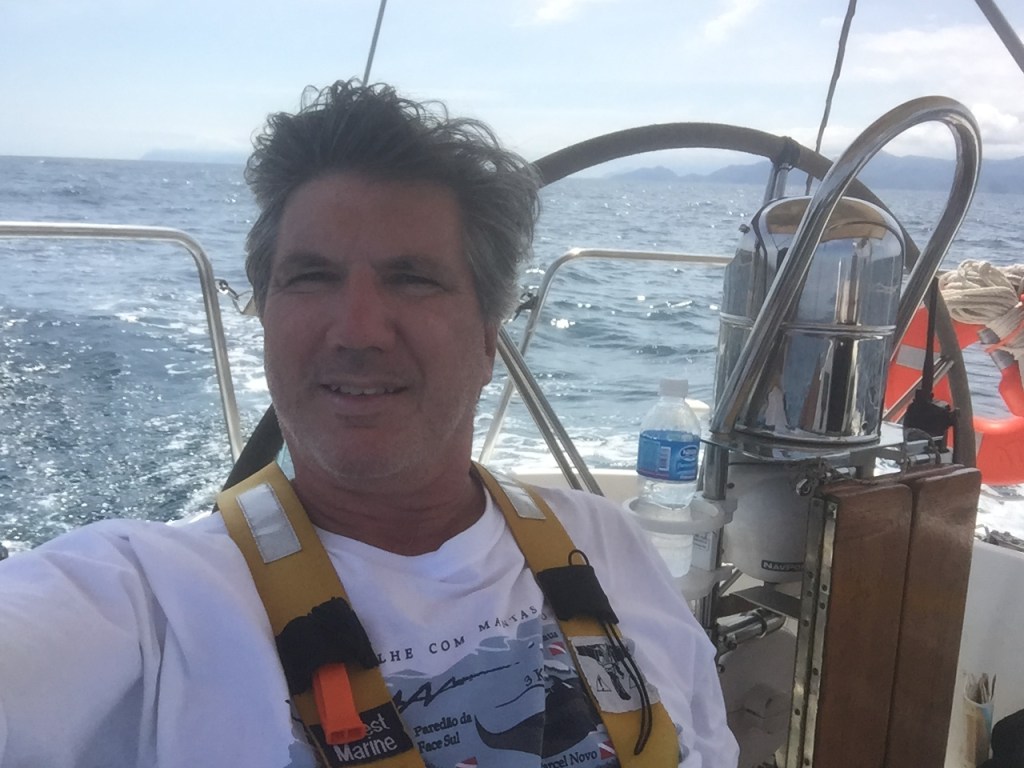 Mas bastava acordar e olhar para o céu que todo o desconforto se justificava. Lá pela meia noite, as estrelas e as constelações estavam tão nítidas que tudo era registrado pelos meus olhos em alta definição… Não sou capaz de descrever a beleza que foi o céu dessa noite! Longe de tudo e de todos, velejando a 7 nós, só com o barulho do vento e da água sendo deslocada pelo casco do veleiro – é de tirar o fôlego! Passei muito tempo fixado em tanta beleza, até que o movimento descontrolado do veleiro, por causa do vento que chegava a 15 nós e das marolas que aumentaram pela popa, me levou a diminuir ainda mais a genoa.