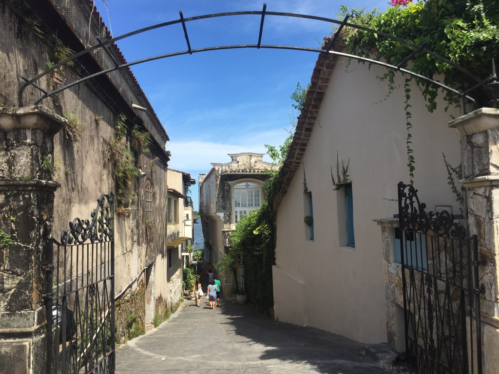 Andei por toda a orla, passando pelo ferry-boat, até chegar às cooperativas de peixe, na base do morro Mirante São João Batista. Então, morrendo de calor, retornei ao meu botinho através de algumas das ruas internas, atrás da igreja, a fim de observar as casas coloniais. Nenhuma me animou… Talvez eu tenha de voltar e pesquisar melhor.