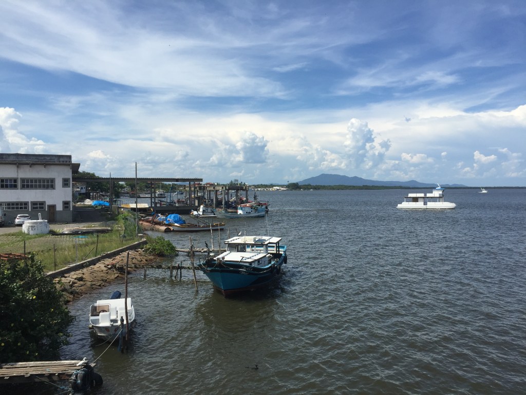 No meio do canal, uma grande quantidade de botos cruzava de um lado para o outro – pareciam pedestres cruzando em suas faixas. Até aquele momento, não havia visto nenhum desses animais, mas então tive certeza: Cananeia é o lar dos botos! Naquele pequeno percurso de 1 milha náutica, devo ter visto uns 200 deles elevando suas barbatanas para fora da água. Lindo!