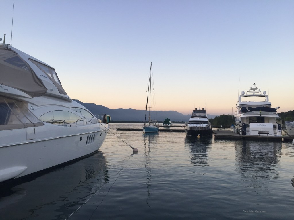 Rodeado por esses iates, o veleiro de 40 pés parece pequeno.