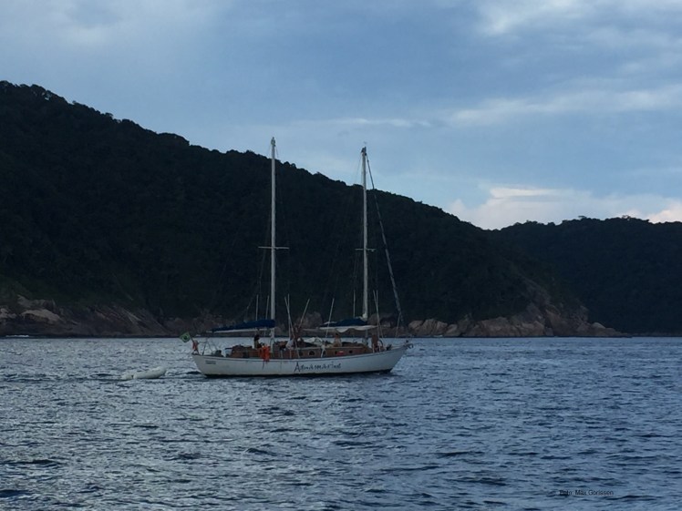 Veleiro clássico velejando ao pôr do sol – Guarujá – SP