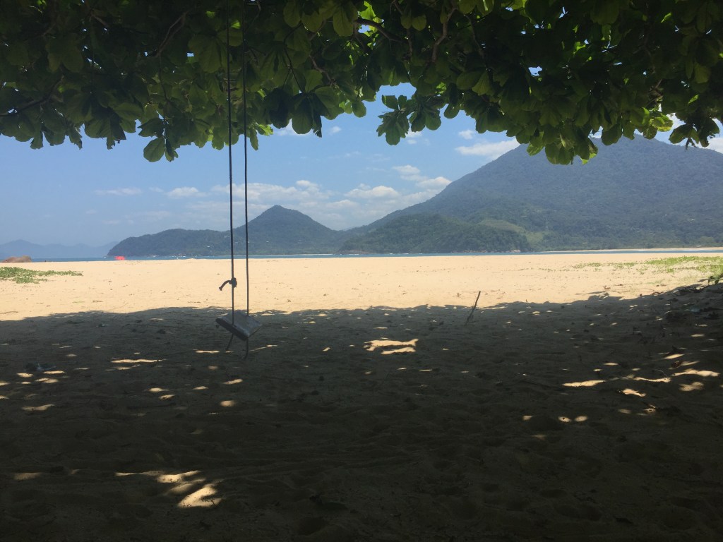 Balança amarrada em uma árvore “Chapéu de Sol” (amendoeira-da-praia).