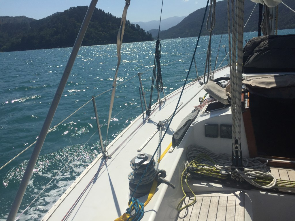 Com uma orça forçada e fazendo 9 nós de velocidade, naveguei batendo em ondas curtas de uns 2 metros pela proa, que faziam com que minha proa muitas vezes ficasse sem água e, passado o ponto de equilíbrio do casco na onda, caísse com um estrondo de batida na água para, logo em seguida, subir novamente e repetir o movimento.