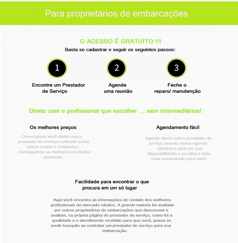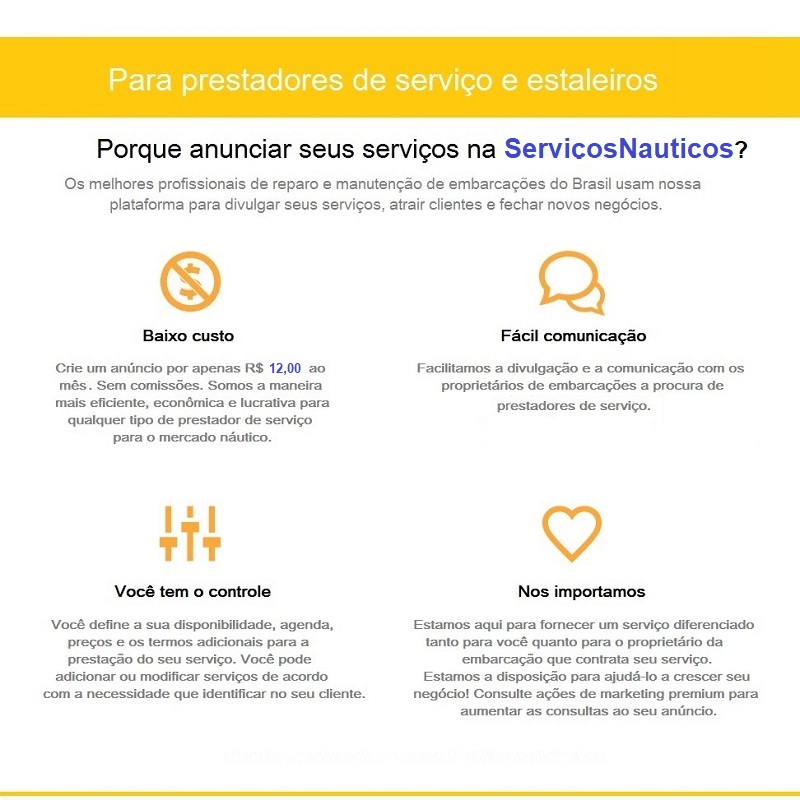 A ideia por trás da ServiçosNáuticos é muito simples: criar um aplicativo onde proprietários de embarcações possam encontrar, próximo ao local do seu barco, profissionais para realizar manutenções e serviços em suas embarcações … simples assim!