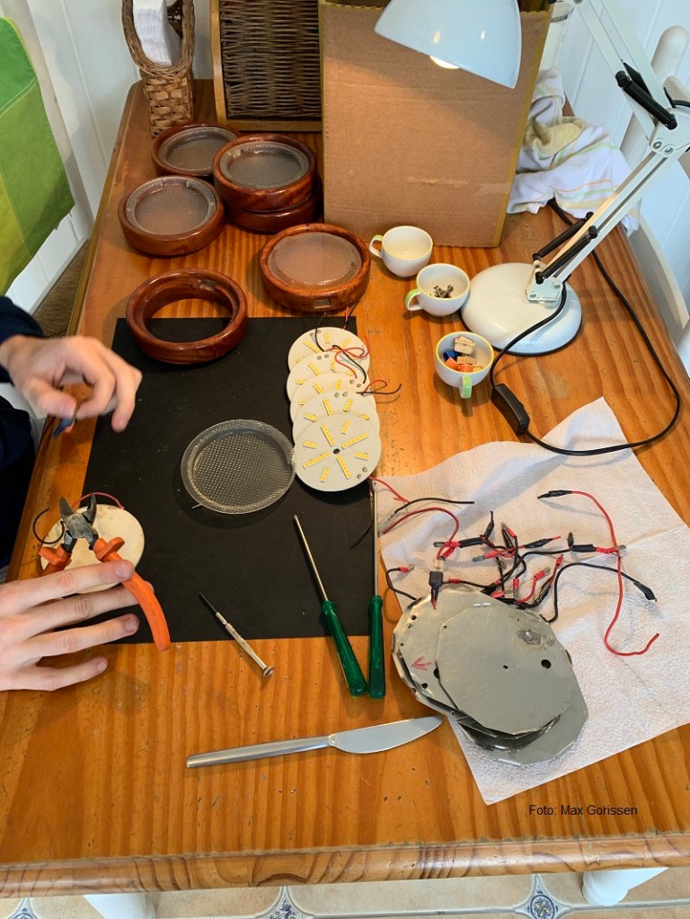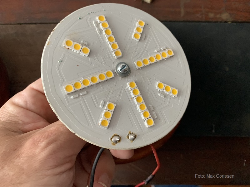 Na troca, tive de substituir em cada uma das 25 luminárias: a base, o soquete, a fiação, o interruptor e a lâmpada incandescente, por um novo suporte (em vez da base), fiação, interruptor e uma “bolacha” de LEDs.