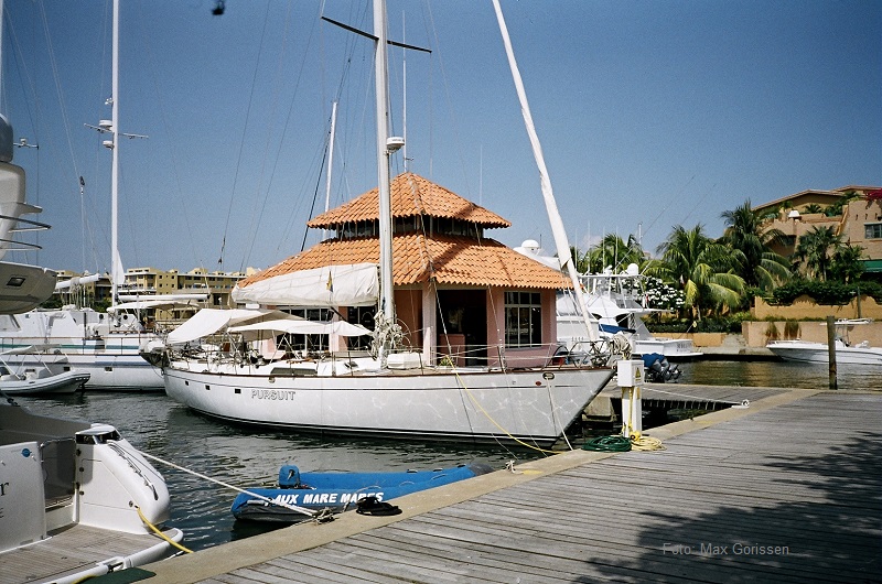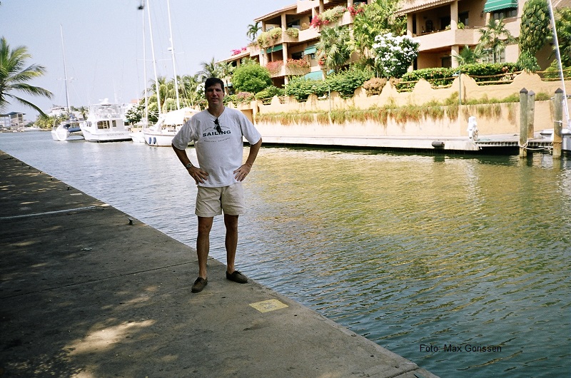 Após o almoço, infelizmente não consegui entrar na marina, mas pude comprar um par de chinelos em uma loja de artigos náuticos em frente ao restaurante, e me troquei para aguentar os mais de 35 graus daquele dia de verão. Comprei também uma bandeira triangular (pavilhão) da Colômbia para subir ao mastro, se algum dia ali chegasse de veleiro.