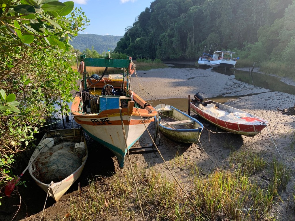 Até os pescadores estão em quarentena… barcos de pesca sobre tabuados durante maré baixa no Rio do Peixe – Praia do Perequê – Guarujá – SP. O significado do nome Perequê seria Pira-ike, “entrada de peixe para alimentação” ou desova em língua tupi, referindo-se ao pequeno rio que deságua na praia, “o rio do peixe”.