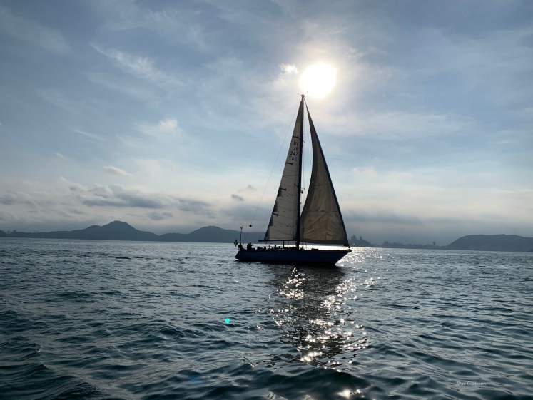 Velejando, serena e calmamente, ao entardecer – Guarujá – SP