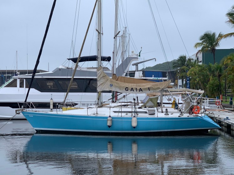 Foto do veleiro de través para “renovação” do Título de propriedade da embarcação… precisa uma foto de través e outra de popa… nesta, dá para visualizar o belo design deste veleiro F&C 40 1987!