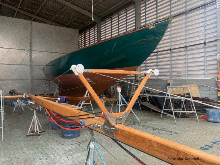 Mastro do veleiro Classe Brasil Turuna (ao fundo) totalmente reformado. O mastro possui uma distribuição dos esforços dos estais usando uma ferragem do tipo “diamante”, ou “Martingala”, como dizem no sul, que sustenta os esforços e o fracionamento do estaiamento. Este mastro originalmente pertencia ao veleiro Malagô, também um Classe Brasil.