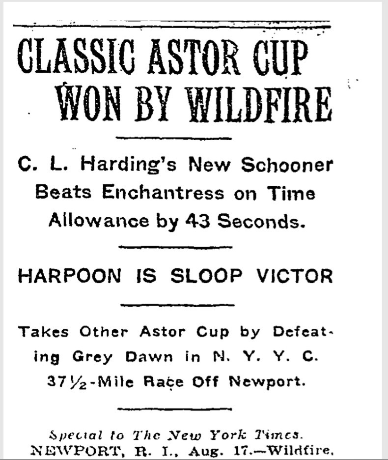 No outono ou segundo semestre de 1922, o Sr.Charles L. Harding aprovou o projeto de Nat Herreshoff e autorizou o início da construção do veleiro que viria a se chamar WILDFIRE, mais precisamente conhecido como; o Race Auxiliary Schooner Wildfire.