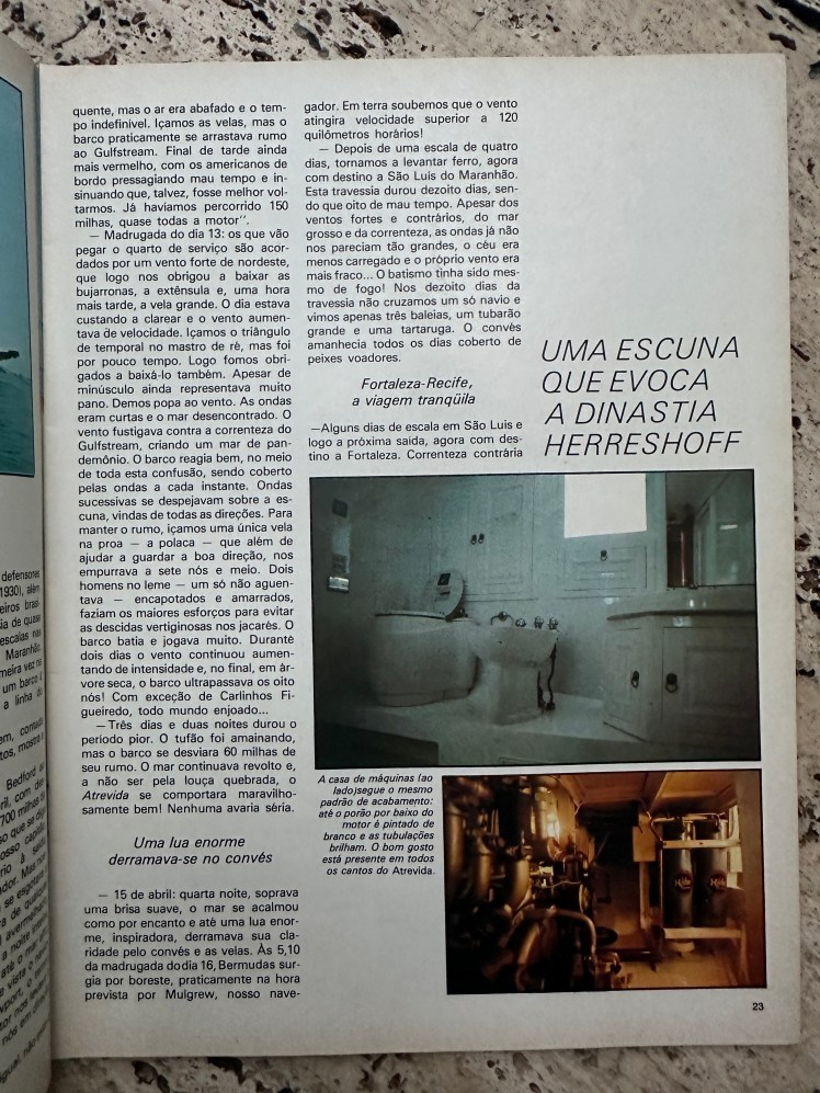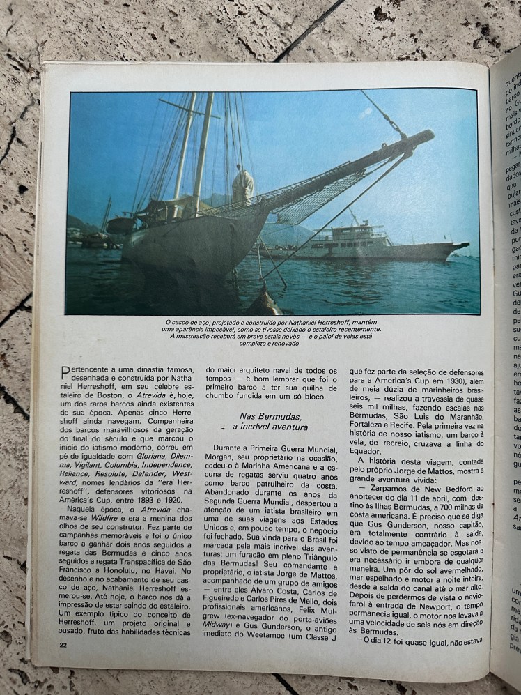 Matéria “Atrevida – Uma lenda e suas muitas bandeiras”. Revista Vela e Motor – Ano I – No. 6 de setembro de 1977. Todos os direitos reservados. Proibida sua reprodução.