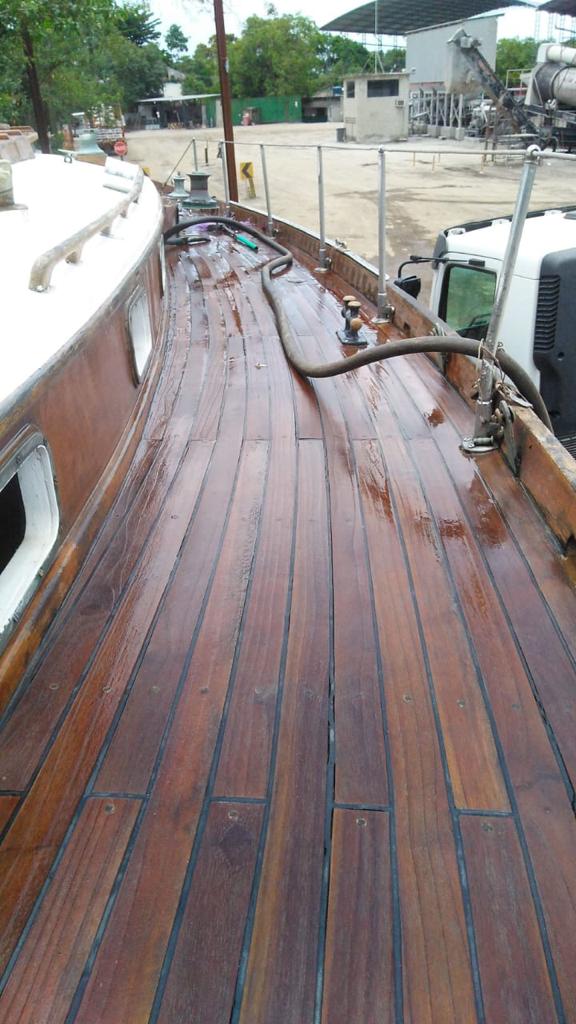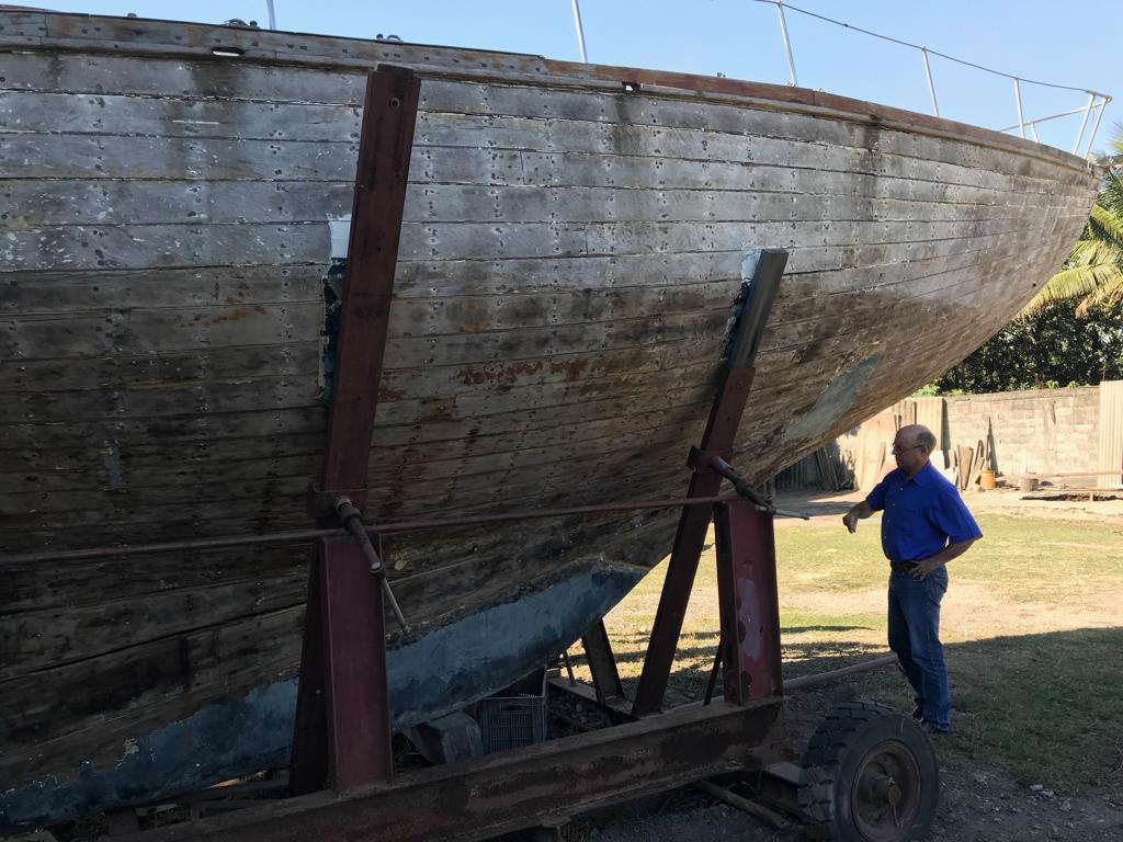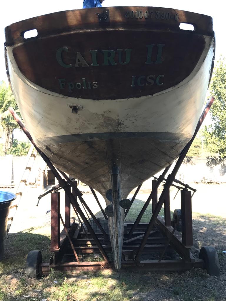 O Cairu II, após um problema no casco durante uma regata em 2015, foi tirado da água e, tendo ficado por uns anos no relento em um terreno no Rio de Janeiro, acabou apodrecendo e se perdeu – Fotos enviadas por Eduardo Hamond em 2019.
