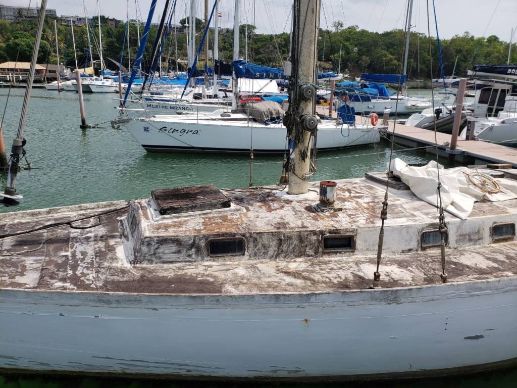 Fotos do veleiro Cangaceiro II quando estava a venda na Bahia em março de 2019. Fotos: Fabio Pena Cal