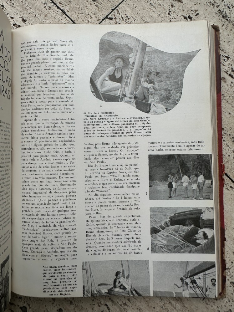 Matéria na qual a esposa de Bruno Hollnagel, Alda Hollnagel, relata o primeiro cruzeiro que realizaram a bordo do “Sirocco” em águas Brasileiras. Revista Yachting Brasileiro No. 59 de setembro de 1949. Todos os direitos reservados. Proibida sua reprodução.