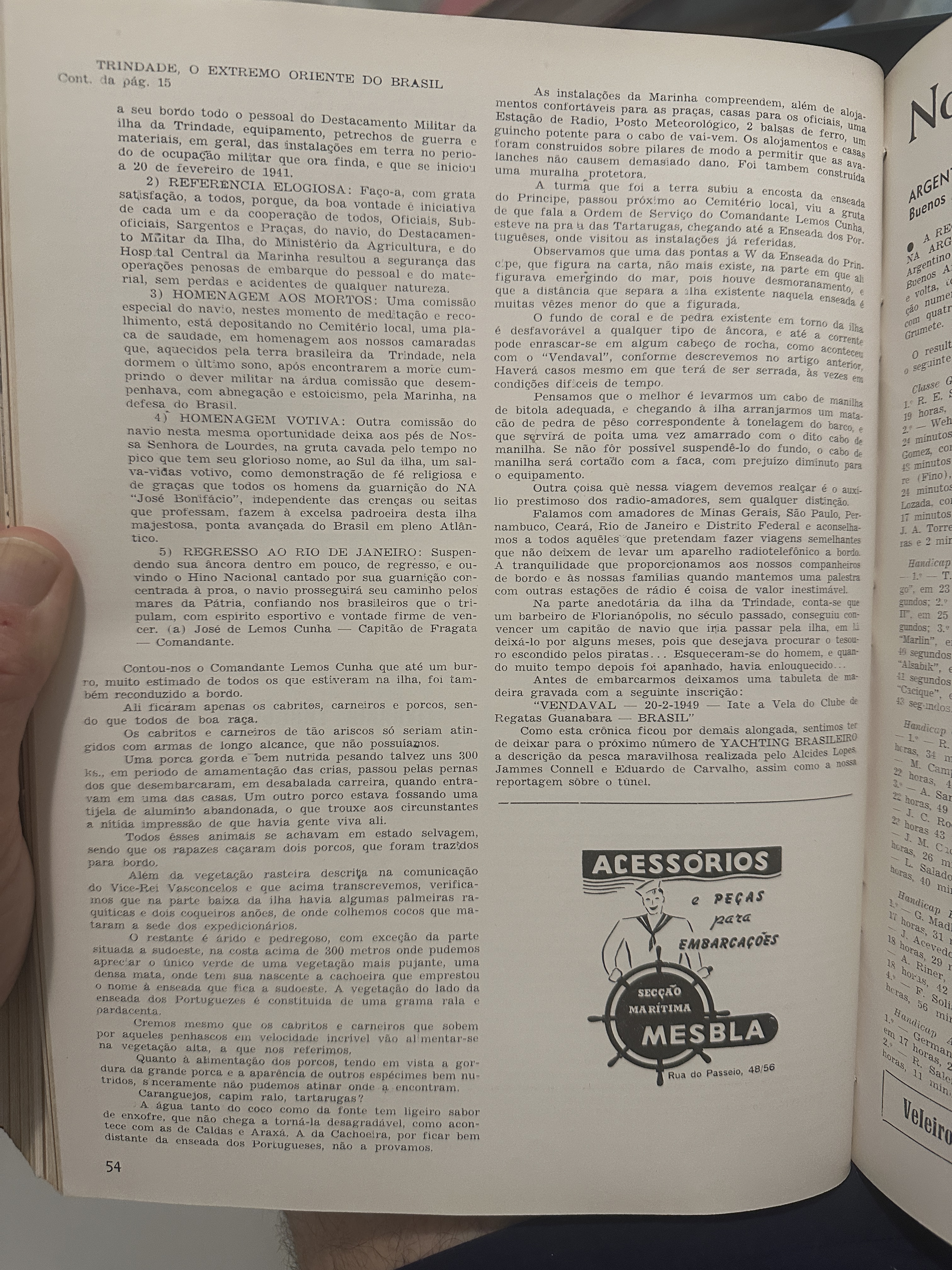 Artigo “Trindade – O extremo Oriente do Brasil” – Primeira parte, com fotos e escrito por J.C.Pimentel Duarte para a Revista Yachting Brasileiro No. 54 de abril de 1949.