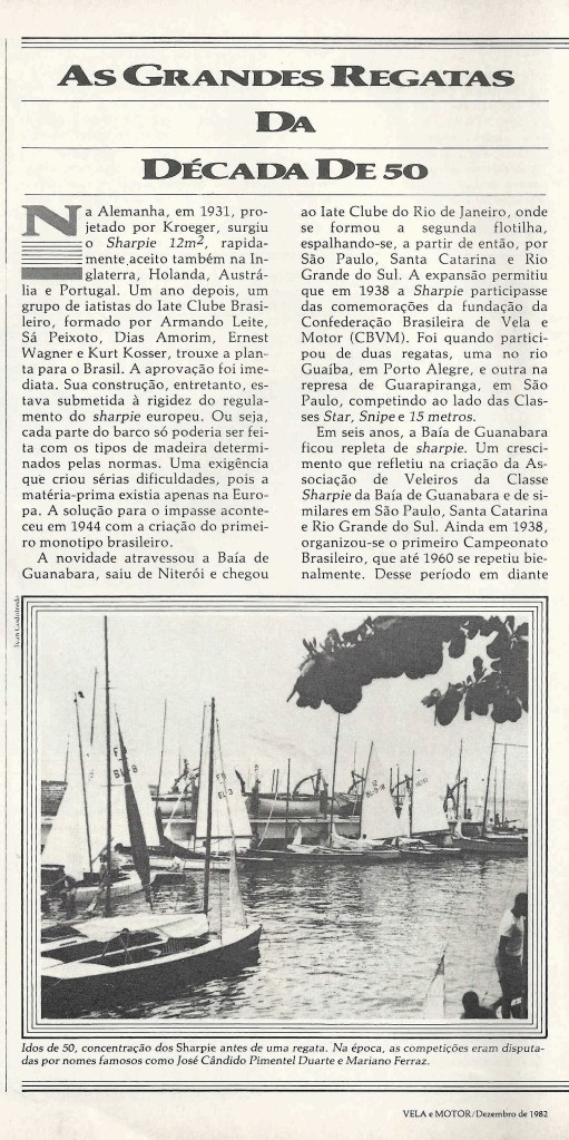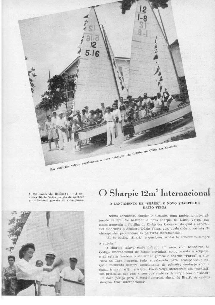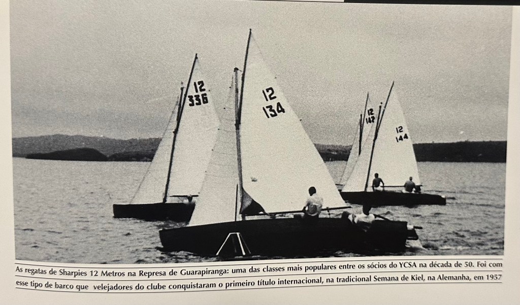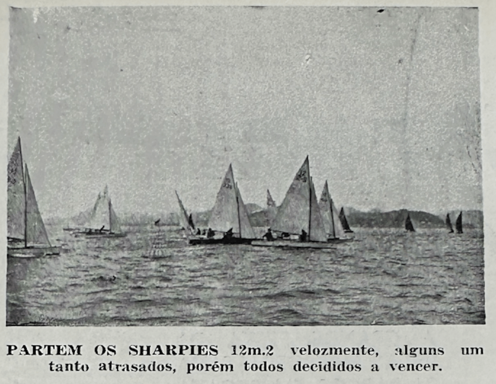 Em 1935, das oficinas situadas na Ilha do Viana, saíram seis Sharpies diretamente para o Iate clube Brasileiro, em Niteroi, assim como no próprio ICRJ, algumas unidades passaram a competir na Lagoa Rodrigo de Freitas com o patrocínio do Clube Caiçaras e na Enseada de Botafogo. Em 1944, com o desenvolvimento da vela, a Classe Sharpie 12 m² já era a mais numerosa do país, com cerca de 200 barcos espalhados em diversos estados, da Baía de Guanabara ao Rio Grande do Sul, e muitos outros em fase de construção. Na época, possuíam um Sharpie 12 m², velejadores do ICRJ como João José Bracony, Harry Adler, Jorge Pontual, Antônio Ferrer, João Pinho, José Pimentel Duarte, Victor Damaison e Gastão de Souza. (Texto e foto da página extraído do Livro 100 anos do ICRJ – página 136).