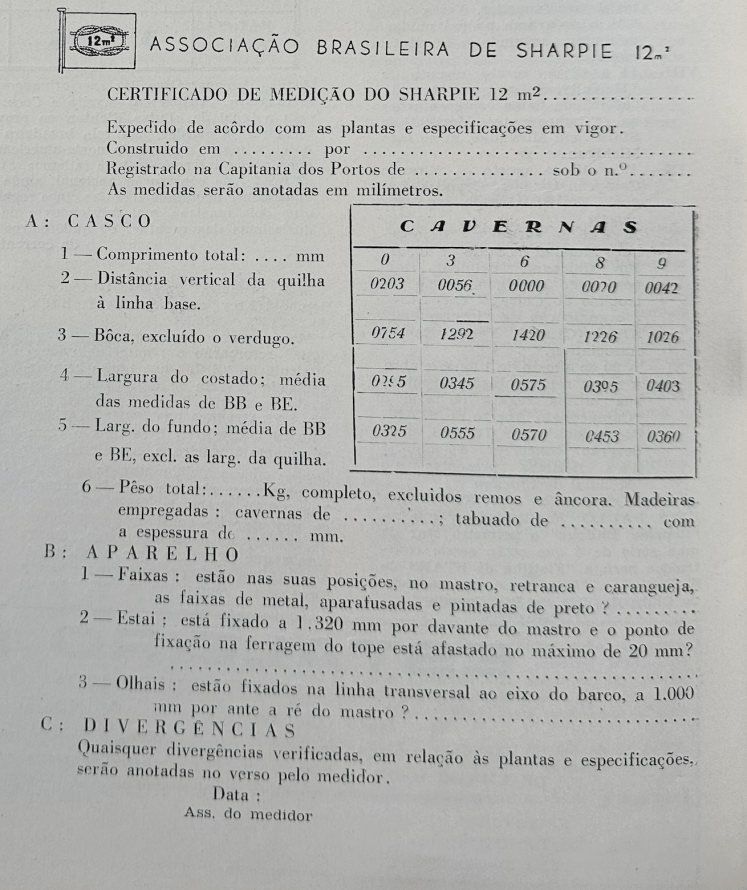 Sabemos que pelo menos um Sharpie 12m foi construído no antigo Yacht Golf Clube, o Boa Vida (BRA 413) de 1948 para Roberto Roy.
