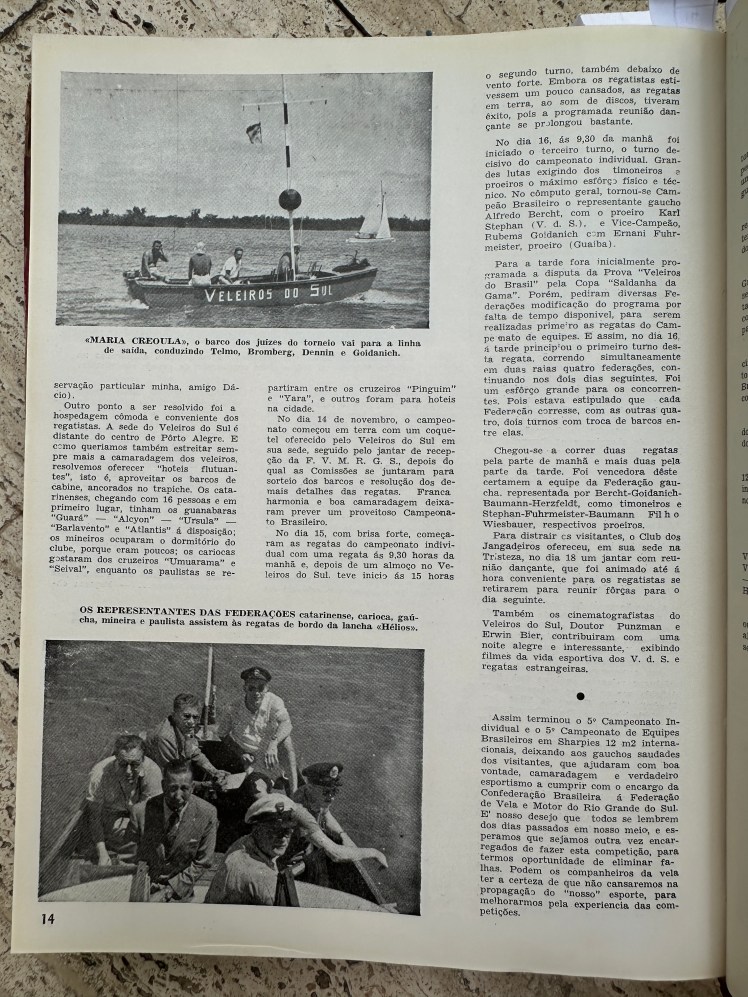 Veja as “Fotos da viagem da delegação do VDS para o Brasileiro de Sharpie em 1966 em Florianópolis” reproduzidas na Revista Minuano de 14 Abril 2011.