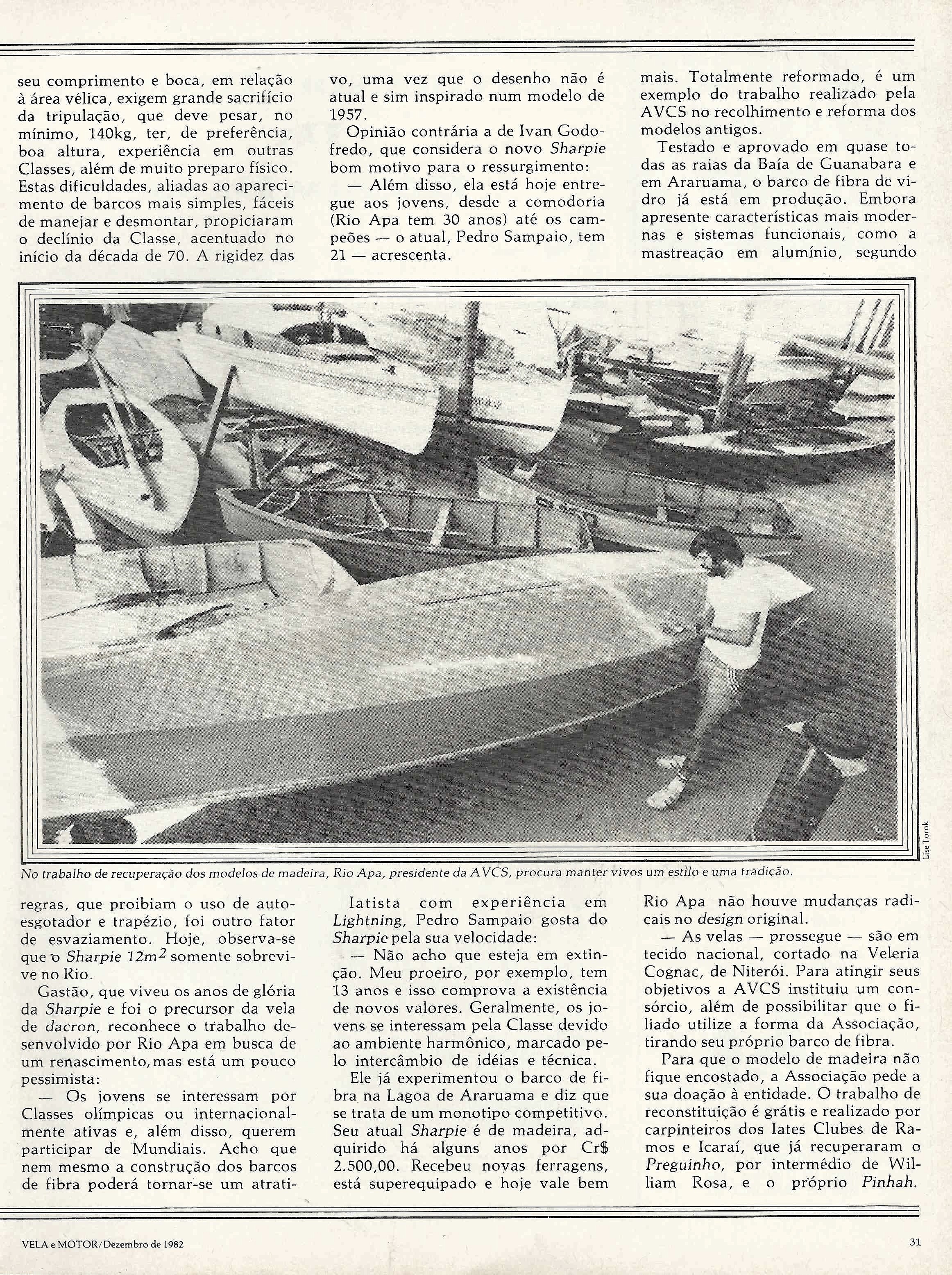 No ano de 1982, Antonio Luís do Rio Apa, então presidente da AVCS-Associação de Veleiros da Classe Sharpie, decidiu, nos moldes dos Light Weight Sharpies Australianos, atualizar a construção e criar a classe de Sharpie 12m² brasileira de fibra de vidro.