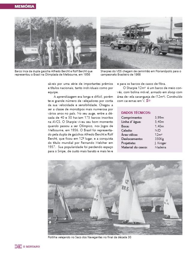 Os Sharpies 12 m² são parte importante da história deste clube como descrito nos artigos reproduzidos abaixo da Revista Minuano ( Copyright © VDS – Veleiros do Sul) e que podem ser lidas no site do Clube clicando aqui.