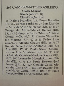 - Campeonatos da Classe Sharpie Brasileira de 1944 até 2002 e 2014-2016