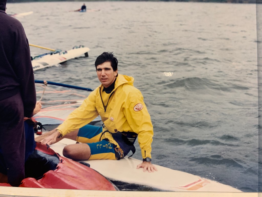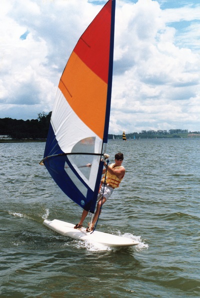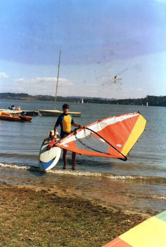 No ano seguinte, querendo velejar sozinho e apaixonado pelo windsurf, que via passando rápido por nosso Lightning, comprei minha primeira prancha na famosa loja de equipamentos Team Brasil, de propriedade de duas pessoas fantásticas, o Marcão e a Tânia, que ficava localizada na Avenida dos Bandeirantes.