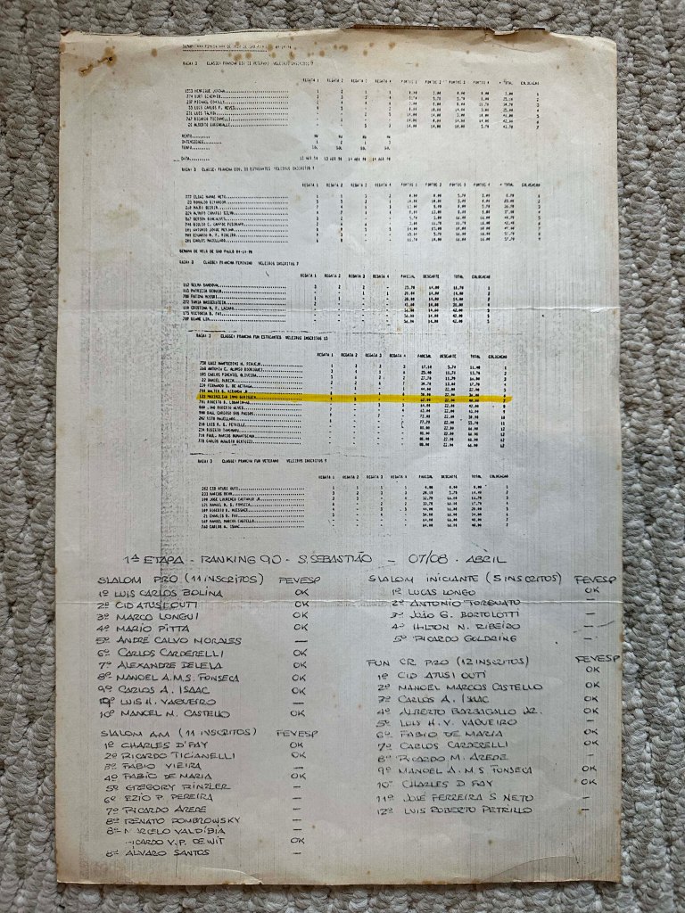Viajei várias vezes para Ilhabela para velejar na Ponta das Canas e participei de vários campeonatos, inclusive, vencendo a Copa Finasa de Vela de 1992 na categoria “Raceboard B” (veja súmula e fotos abaixo) e o Campeonato Paulista de Raceboard B de 1992.