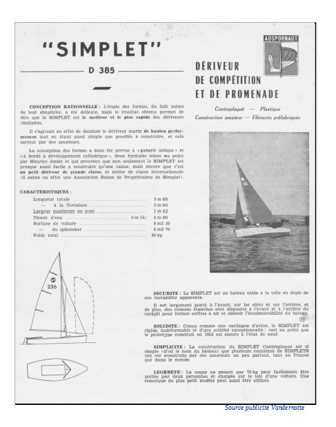 Projetado por Maurice Amiet em 1952, o Simplet faz parte daquela encantadora geração de barcos jovens que, juntamente com o Vaurien, o Mousse e alguns outros, contribuíram para a democratização da náutica de recreio francesa.