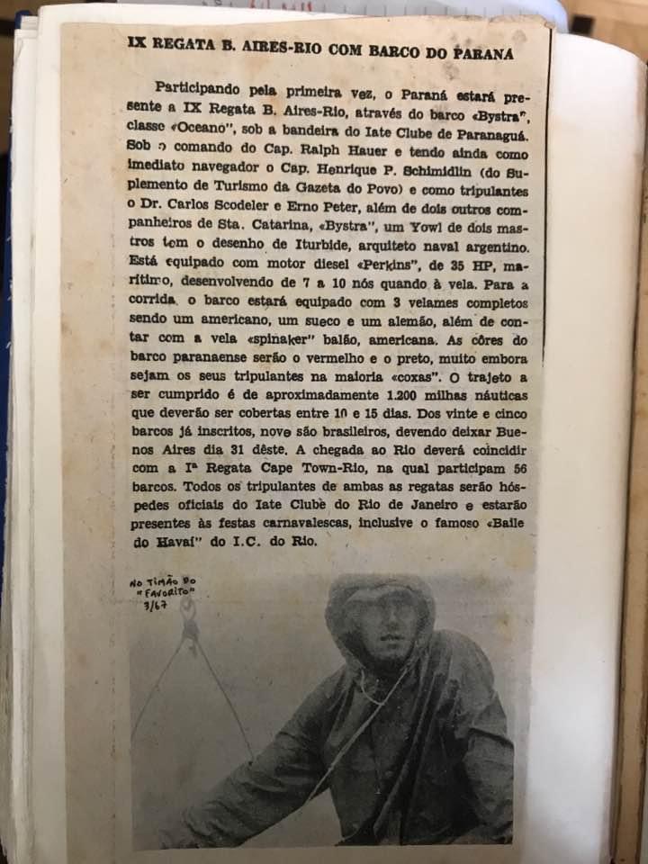 * O veleiro PLUFT, de Israel Klabin, foi o vencedor da IX Buenos Aires – Rio – janeiro de 1971.