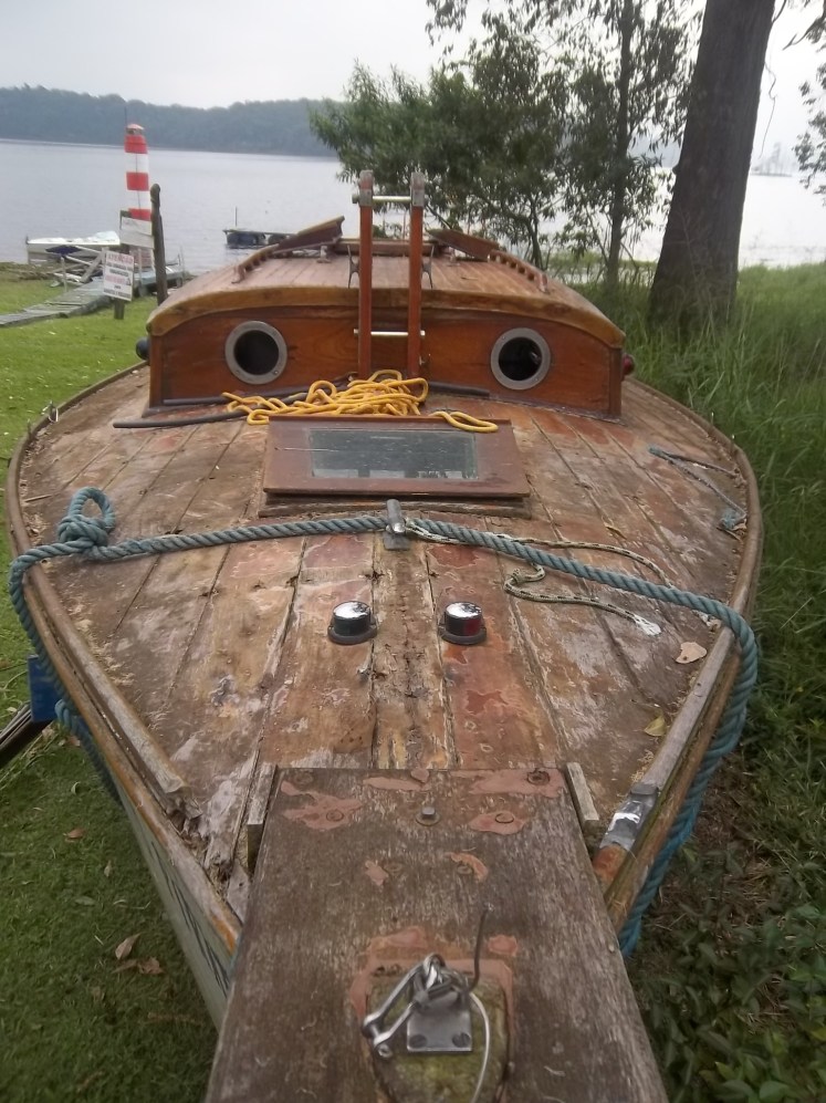 Tenho um Guanabara que comprei há anos e estou reformando….. chamava Orca IV… passou a ser Espirito Pirata e, agora, vou mudar o nome para Fênix, assim que colocar na água….. Falta bem pouco…. estofados…..instalar leme, fazer a bolina….. e não vou fazer grandes instalações elétricas ou hidráulicas….. Aqui ja estava em casa como Espirito Pirata: