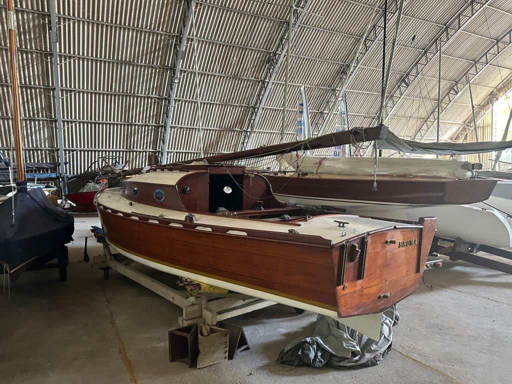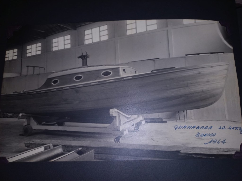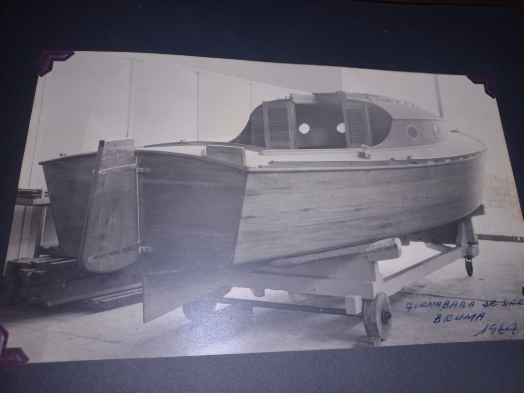 Fotos enviadas por Lucca Modenesi do veleiro Guanabara Thalassa: “Essa foto pode interessar aos senhores, o filho do Manoel Vareta do Estaleiro Varetas, que construiu vários barcos, é amigo nosso e fui a casa dele para ver fotos do estaleiro, essa foto é do Guanabara Bruma, ainda na madeira pura, estonteantemente lindo!” – recebidas em 04/08/2025