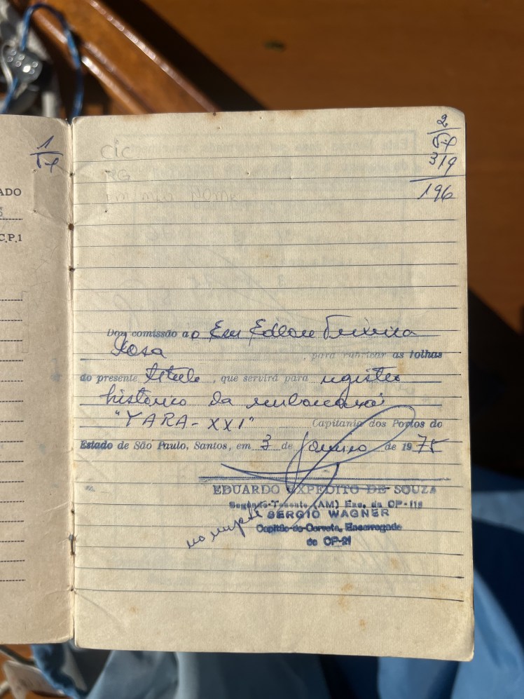 - Número de inscrição na marinha: 20.515 de 03 de janeiro de 1975