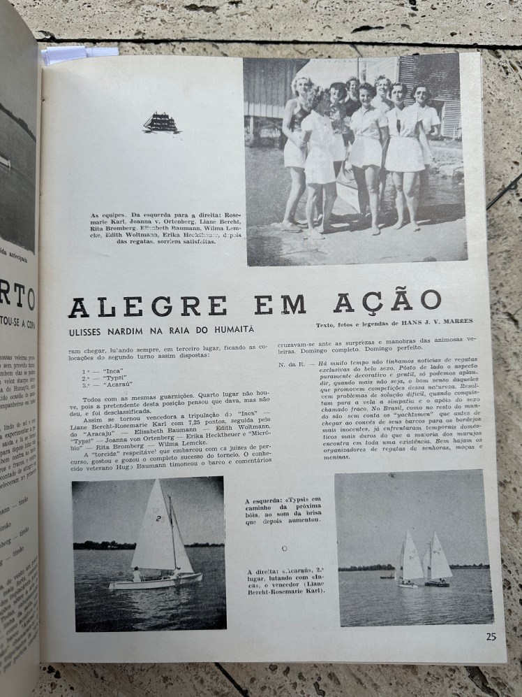 Artigo sobre a regata Copa Ulisses Nardim – Porto Alegre 15 de janeiro de 1950 (regata só para mulheres) na Revista Yachting Brasileiro No. 64 de Fevereiro de 1950 – artigo: “Veleiras de Porto Alegre em ação” – Copyright Revista Yachting Brasileiro – Todos os direitos reservados – proibida reprodução