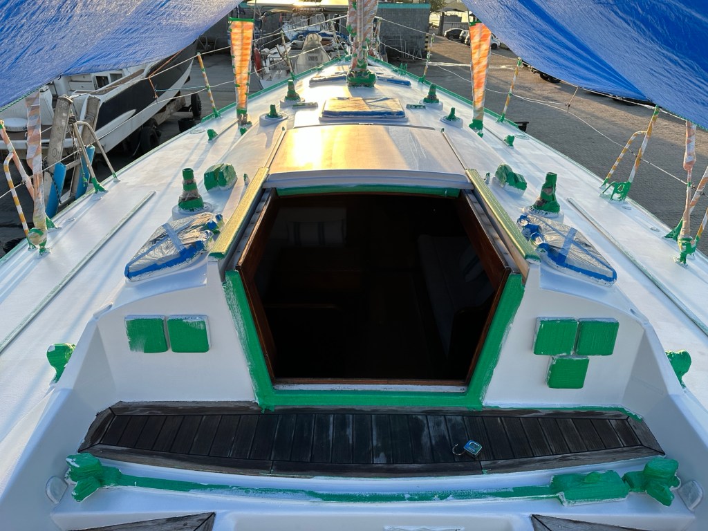 Por do sol refletindo após pintar o deck com uma mão de primer epoxy…