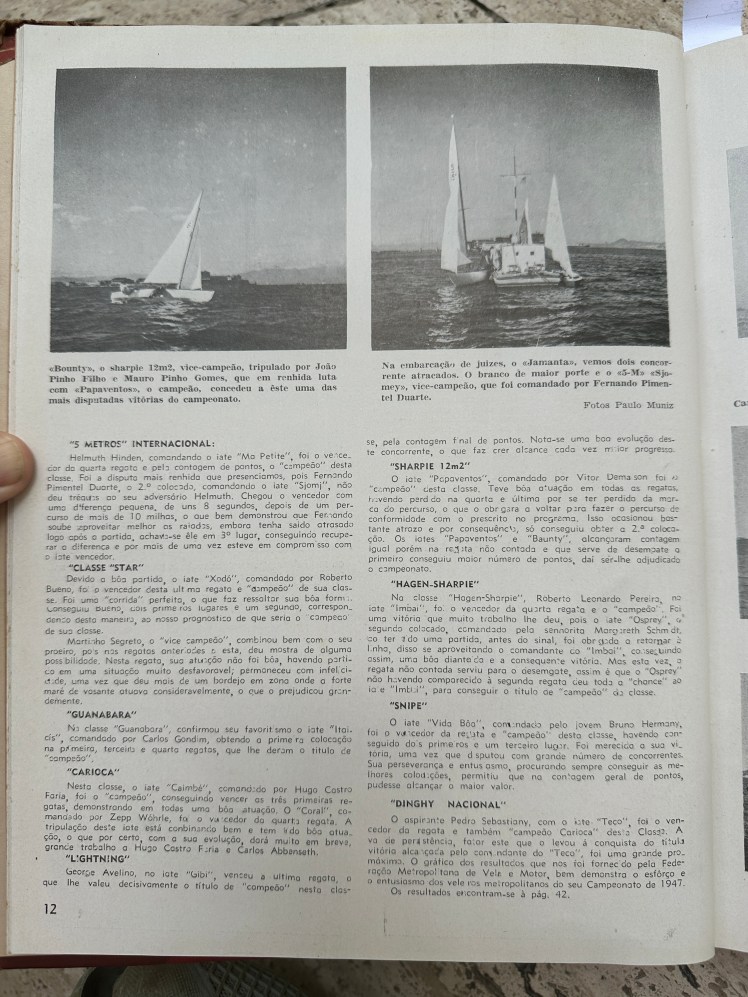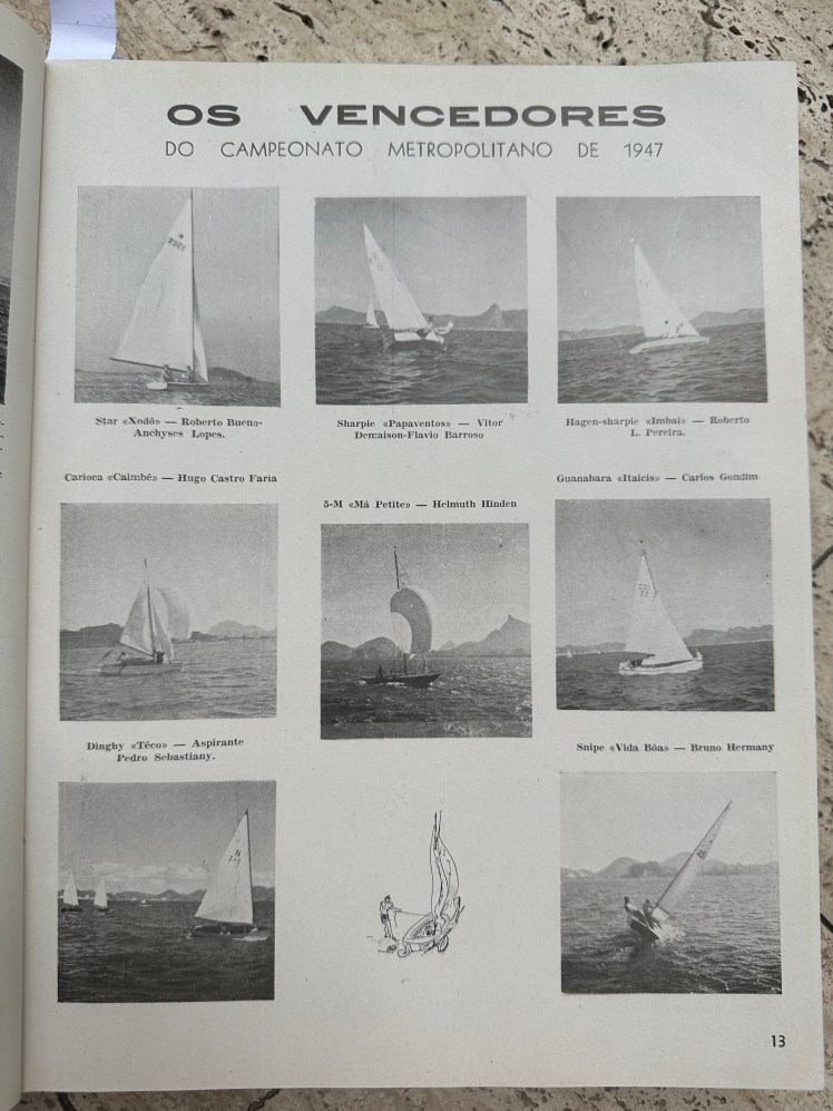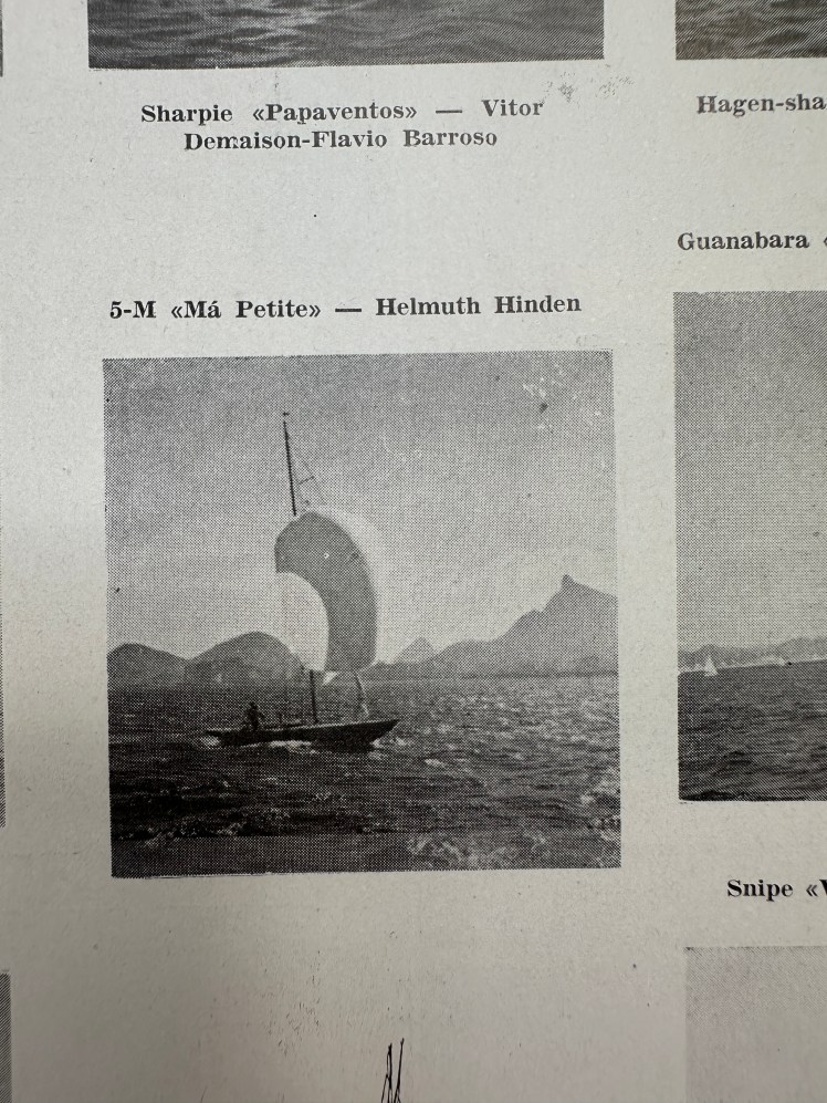 Veleiro Má Petite no Campeonato Metropolitano de Vela de 1947 (9 a 30 de novembro de 1947) no RJ. Revista Yachting Brasileiro No. 39 de janeiro de 1948. Todos os direitos reservados. Proibida sua reprodução.